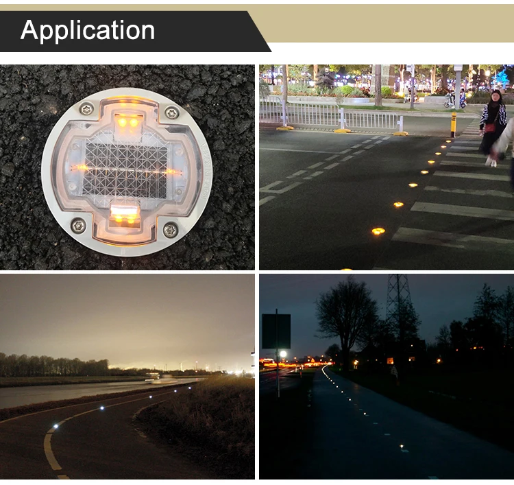 O pino de estrada solar é um dispositivo de iluminação LED alimentado por bateria solar intermitente usado na construção de estradas para delinear a borda e a linha central da estrada. Embutidos na estrada, eles são uma melhoria em relação ao olho de gato tradicional, pois podem dar ao motorista uma resposta de mais de 32 segundos, enquanto o dispositivo de reflexão tradicional tem apenas cerca de 3 segundos.